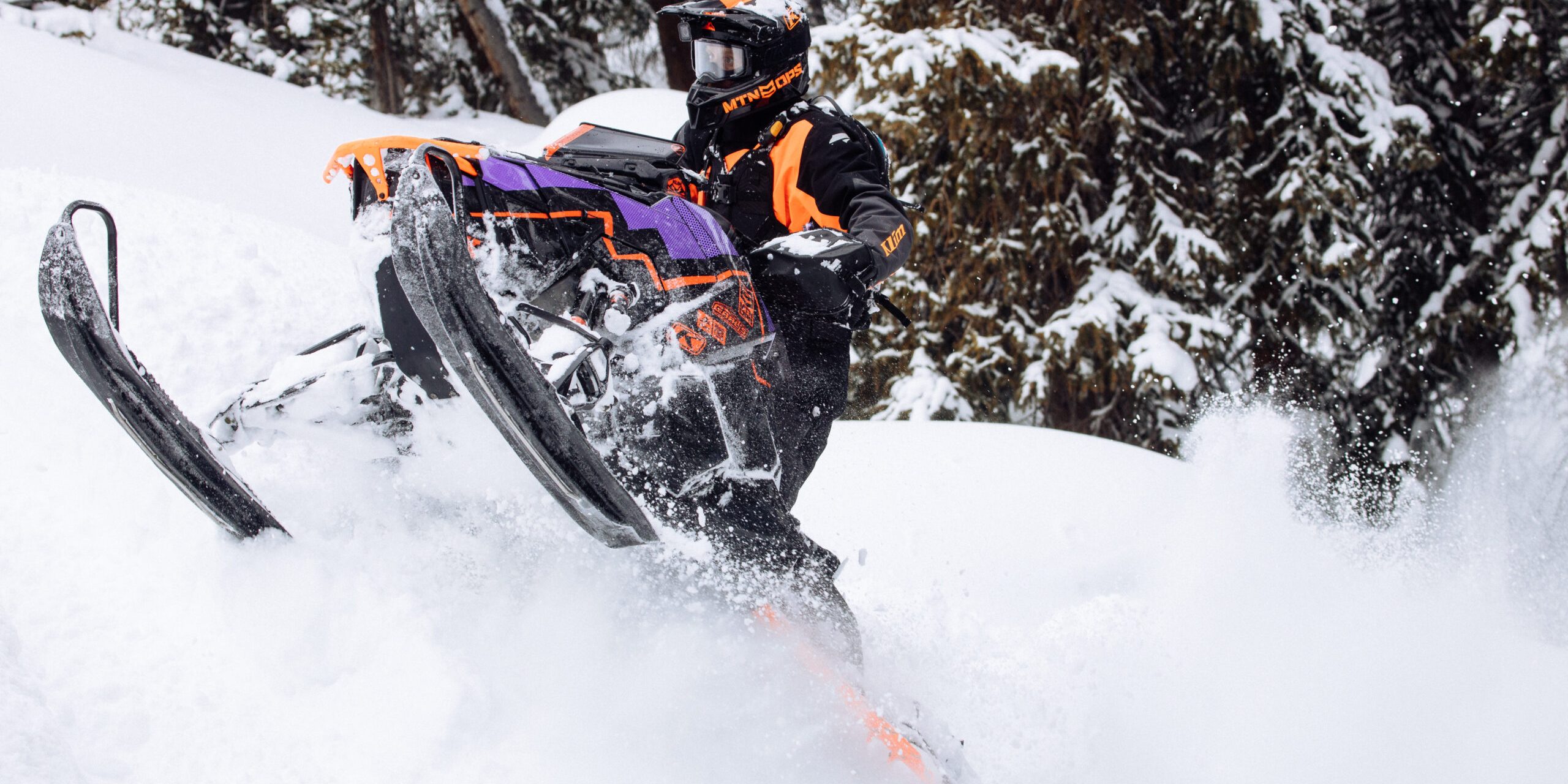 Burandt’s Incognito sled wrap takes a fun twist on the classic mountain sled graphic design. Burandt chose to use purple and orange as his color combo, and I gotta say it’s looking awesome in that fresh powder!