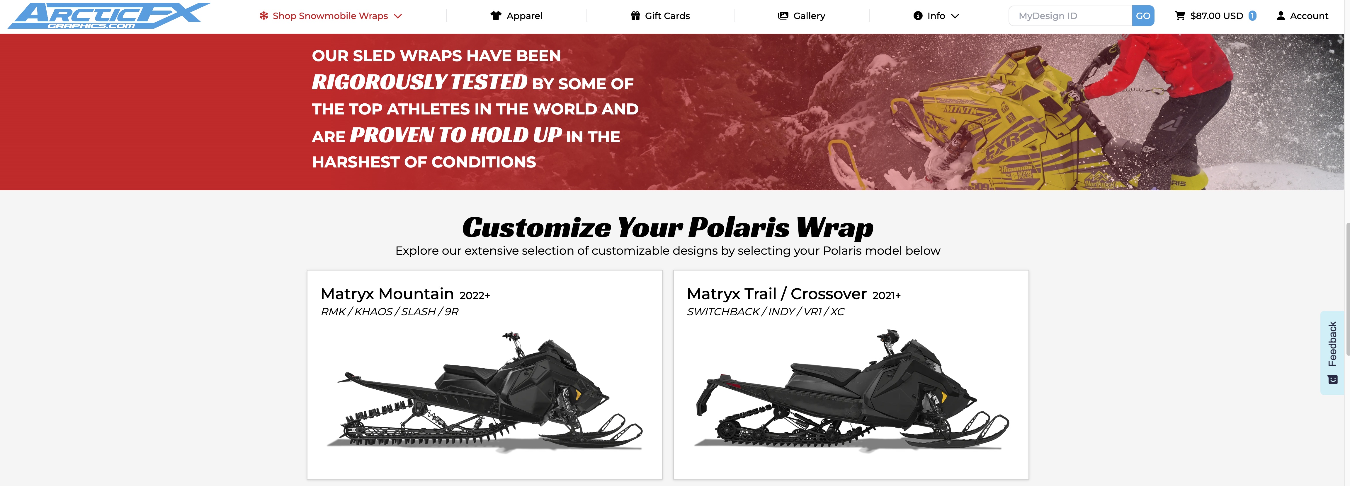 - Scroll down to find your sled model and type. ArcticFX breaks each model into 4 easy categories: Mountain, Trail, Crossover, and Youth